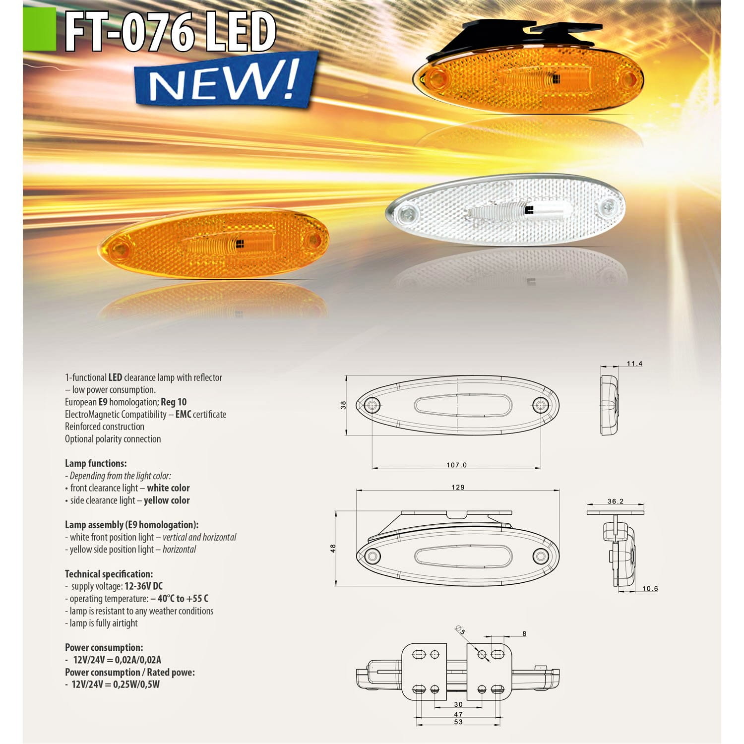 - 12V/24V = 0,25W/0,5W