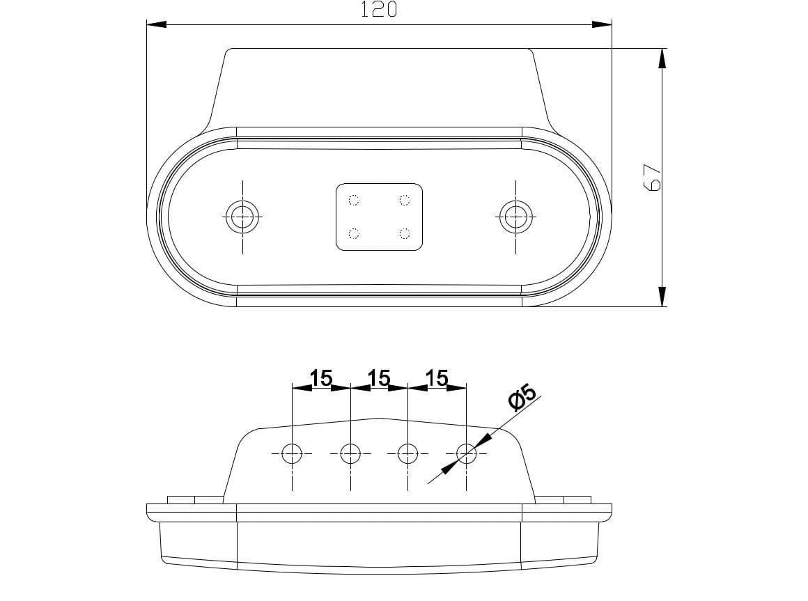 - - światło obrysowe czerwone: 12V/24V = 0,03A/0,03A