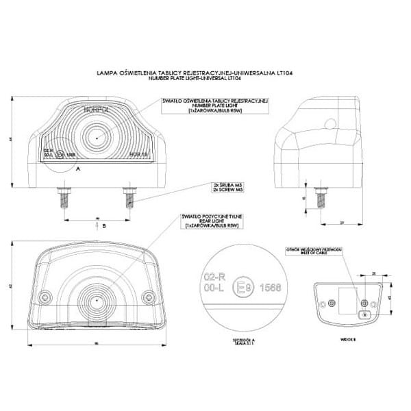 Lampa oświetlenia tablicy rejestracyjnej żarówkowa R5W - CZERWONA LT 104