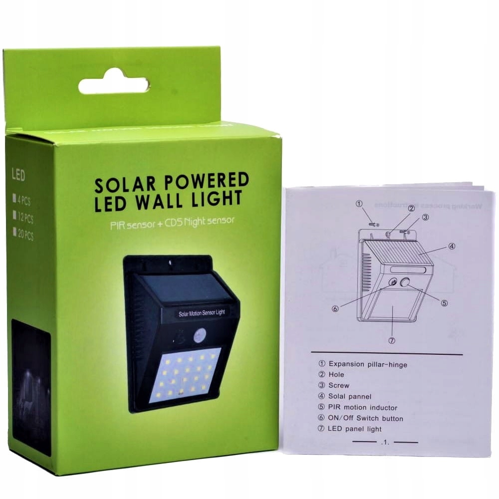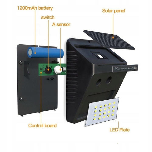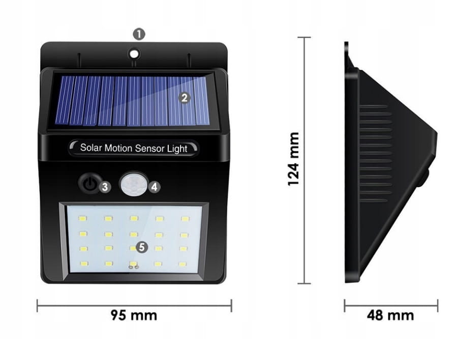 Lampa solarna 20 LED z czujnikiem zmierzchu oraz czułym czujnikiem ruchu jako dodatkowe oświetlenie.