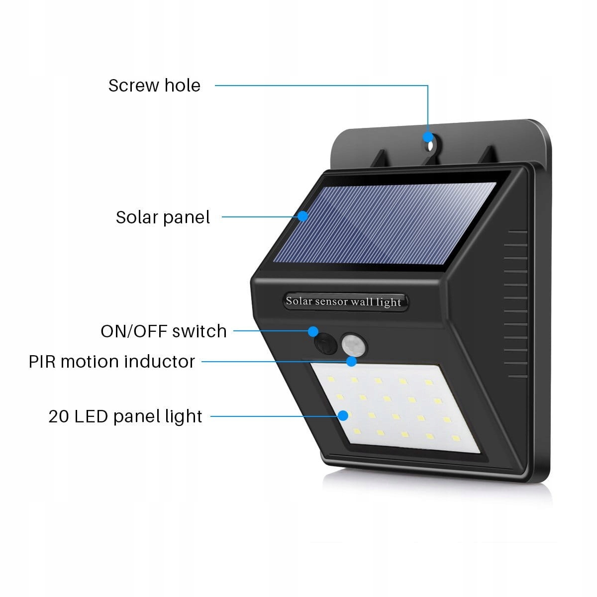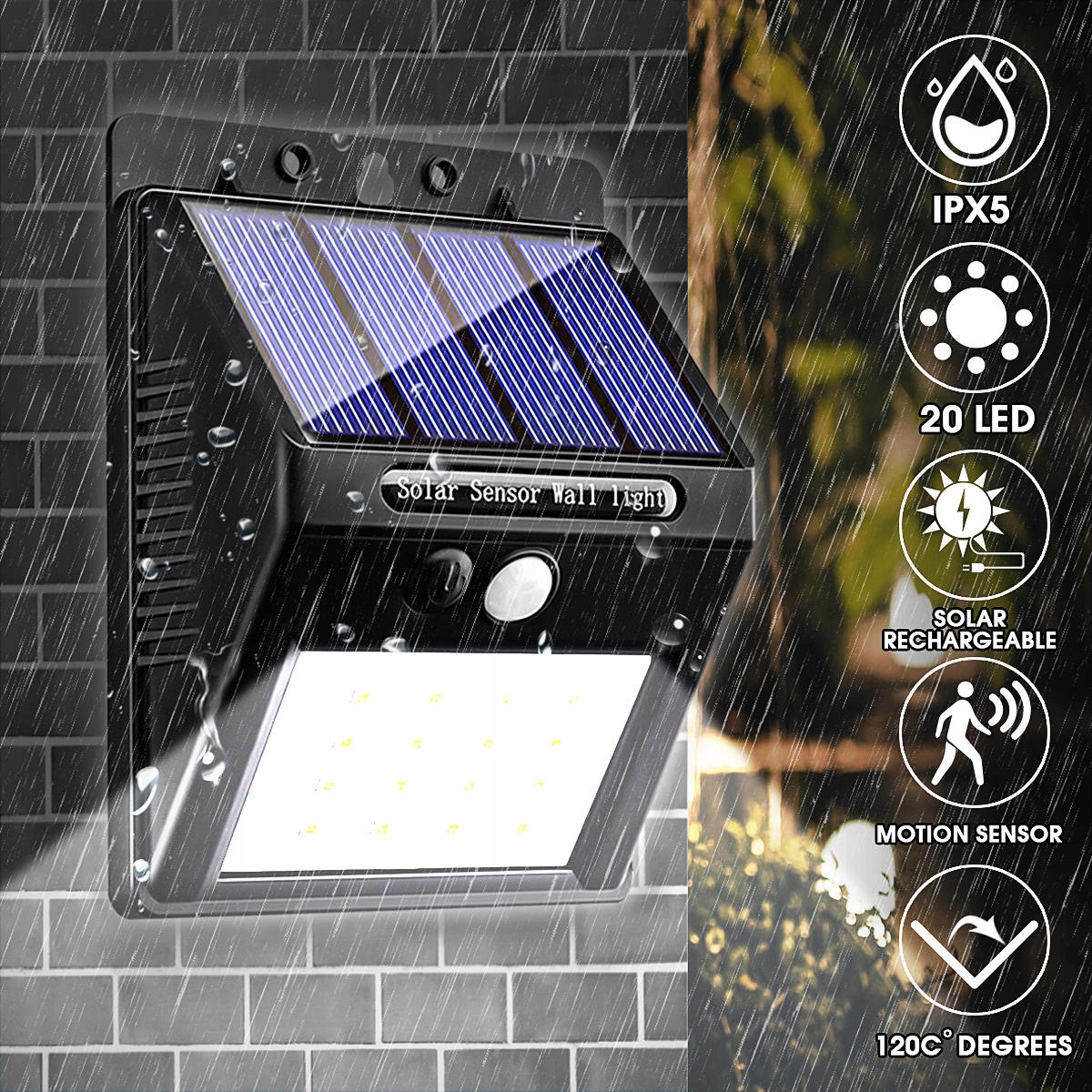 - Applique murale de jardin étanche 20 LED à capteur de mouvement solaire