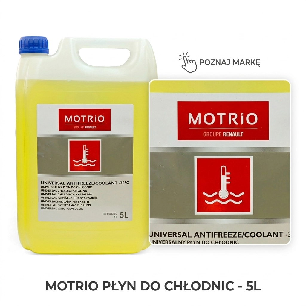 - Płyn chłodniczy MOTRIO 8660006880 5L do Renault, Dacia, Nissan – skuteczna ochrona układu chłodzenia w temperaturach do -35°C.