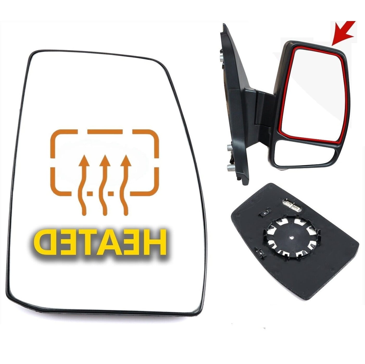 Ogrzewanie: Jest (grzałka przyklejona bezpośrednio do lustra wkładu). Wkład przeznaczony jest do lusterek ogrzewanych, a także nieogrzewanych.